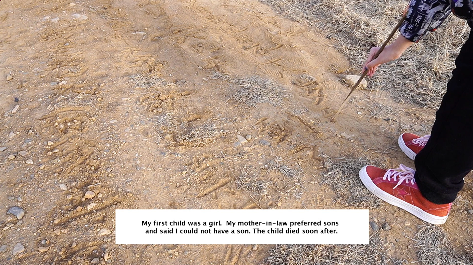 I wrote my grandmother's story of her encounter with sexism on a dirt road in the countryside. Even if people and cars make the words disappear, the stories stay in people's memories forever.